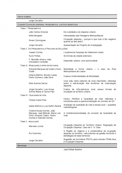 Projecto de Investigação “Custos e Benefícios, à escala local, de uma Ocupação Dispersa”, da responsabilidade das Universidades de Aveiro e Évora e da Direcção-Geral do Ordenamento do Território e do Desenvolvimento Urbano e financiado pela Fundação para a Ciência e Tecnologia.